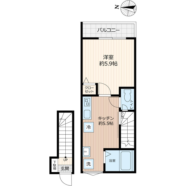 K 5.5帖 1室/洋室 5.9帖 1室 - 向き